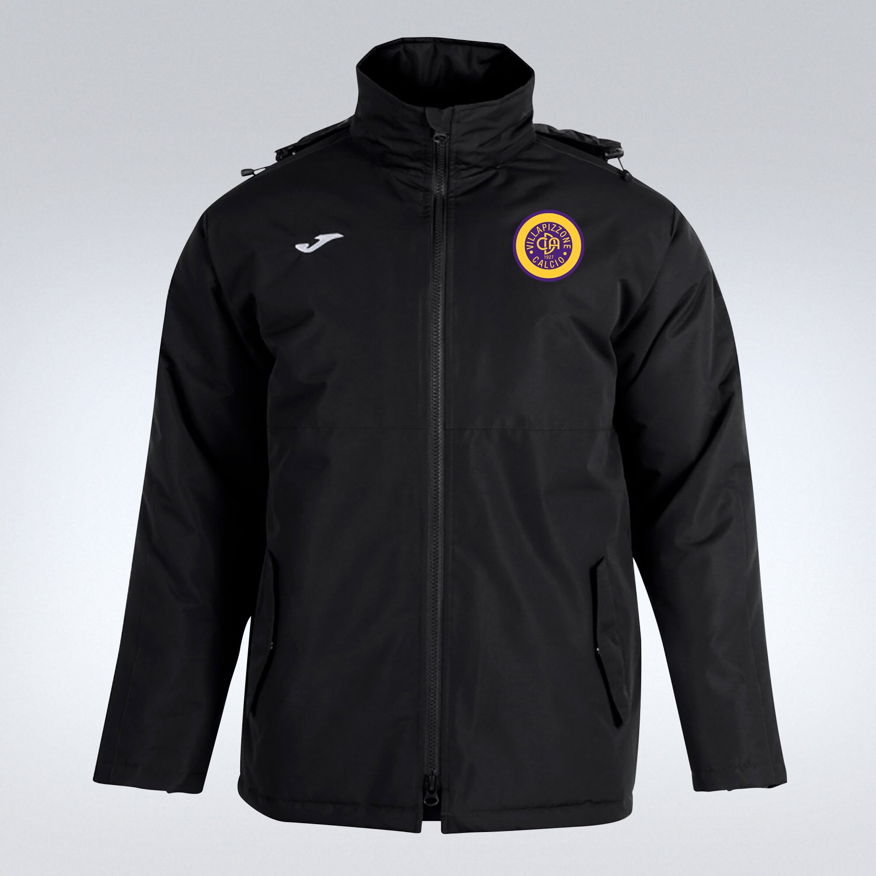 Giaccone Joma nero Villapizzone, antipioggia, apertura con zip e polsini elastici regolabili per mantenere il comfort. Dispone di cappuccio nascosto e tasche con zip nascosta. Include la tecnologia Micro-Mesh all'interno per aumentare la traspirabilità. Ha anche la tecnologia Water-Resistant.